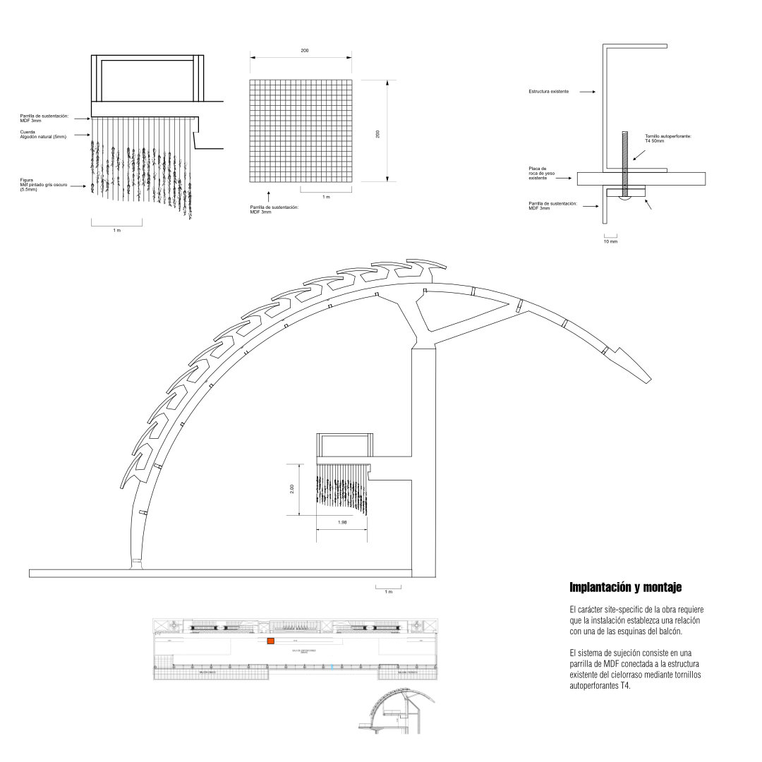 El carácter site-specific de la obra requiere que la instalación establezca una relación con una de las esquinas del balcón.